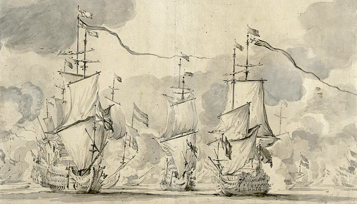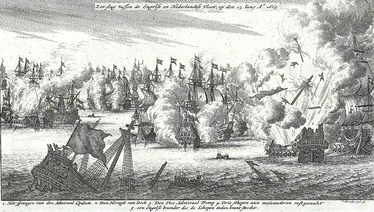 ◊ 1665, 13 Juni; Adriaen van Reede(1612-1671) is hij kapitein op het oorlogsschip ‘de Tromp’ tijdens de slag bij Lowestoff.